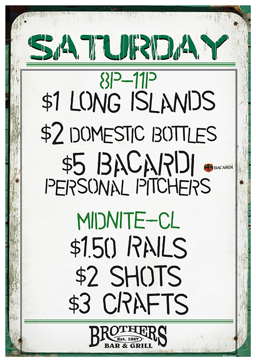 Columbus Brothers Bar BloodyMary 2 2 sided signs mimosa is front smooth coroplast 2 grommets