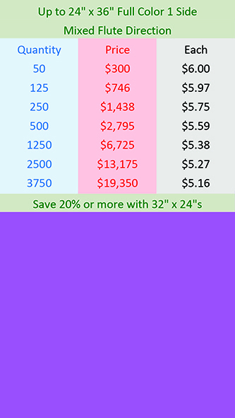 24 in x 36 in Coroplast Printed Full Color Mixed Flutes