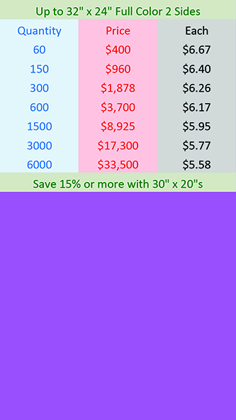 With our 60x120" 4mm coro sheets you may squeeze and inch off your signs here and there and save big